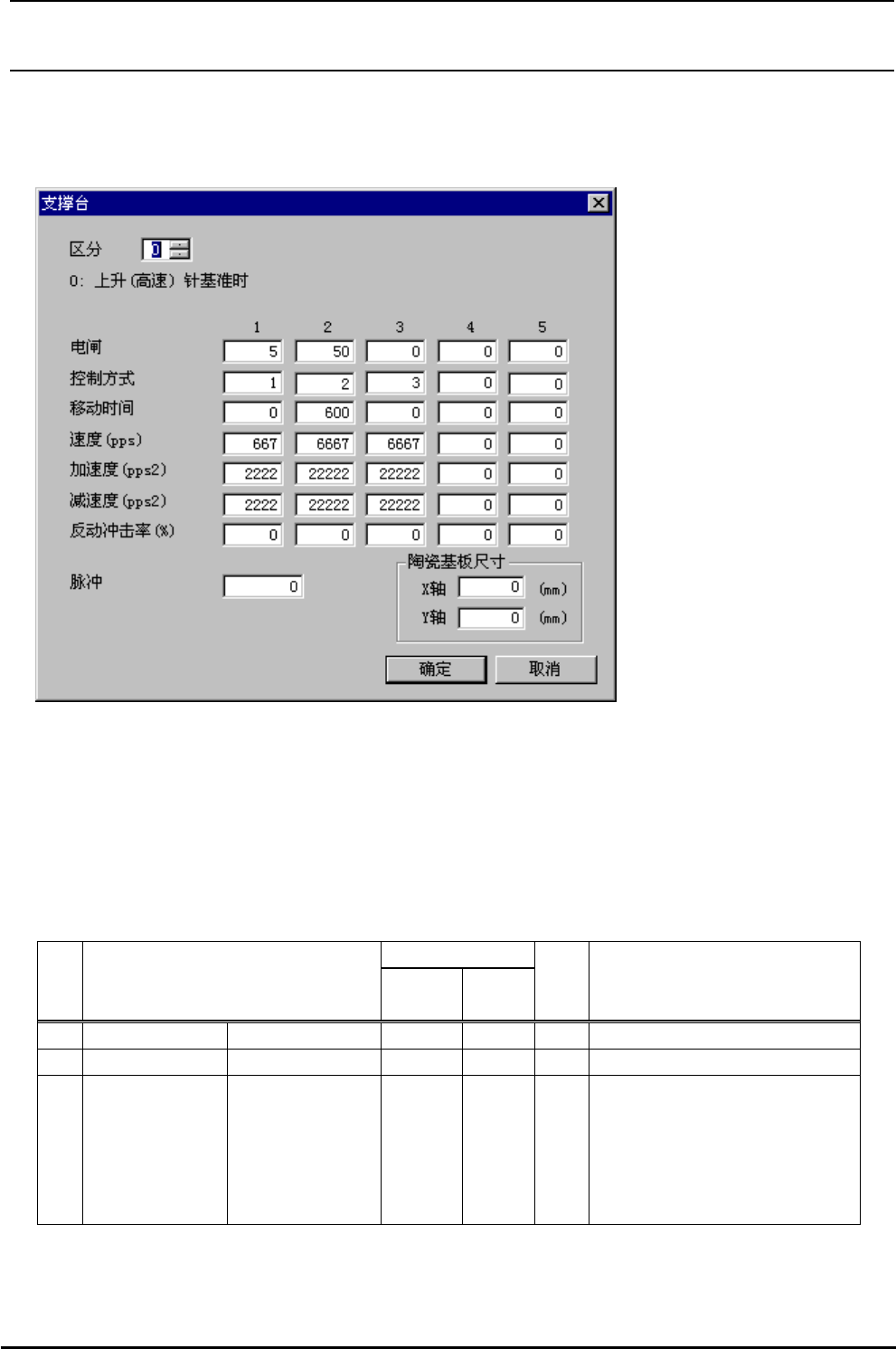 2) 在区分上选择了 1 可以编辑脉冲 和画面 列的速 p 、加速度(pps2)、