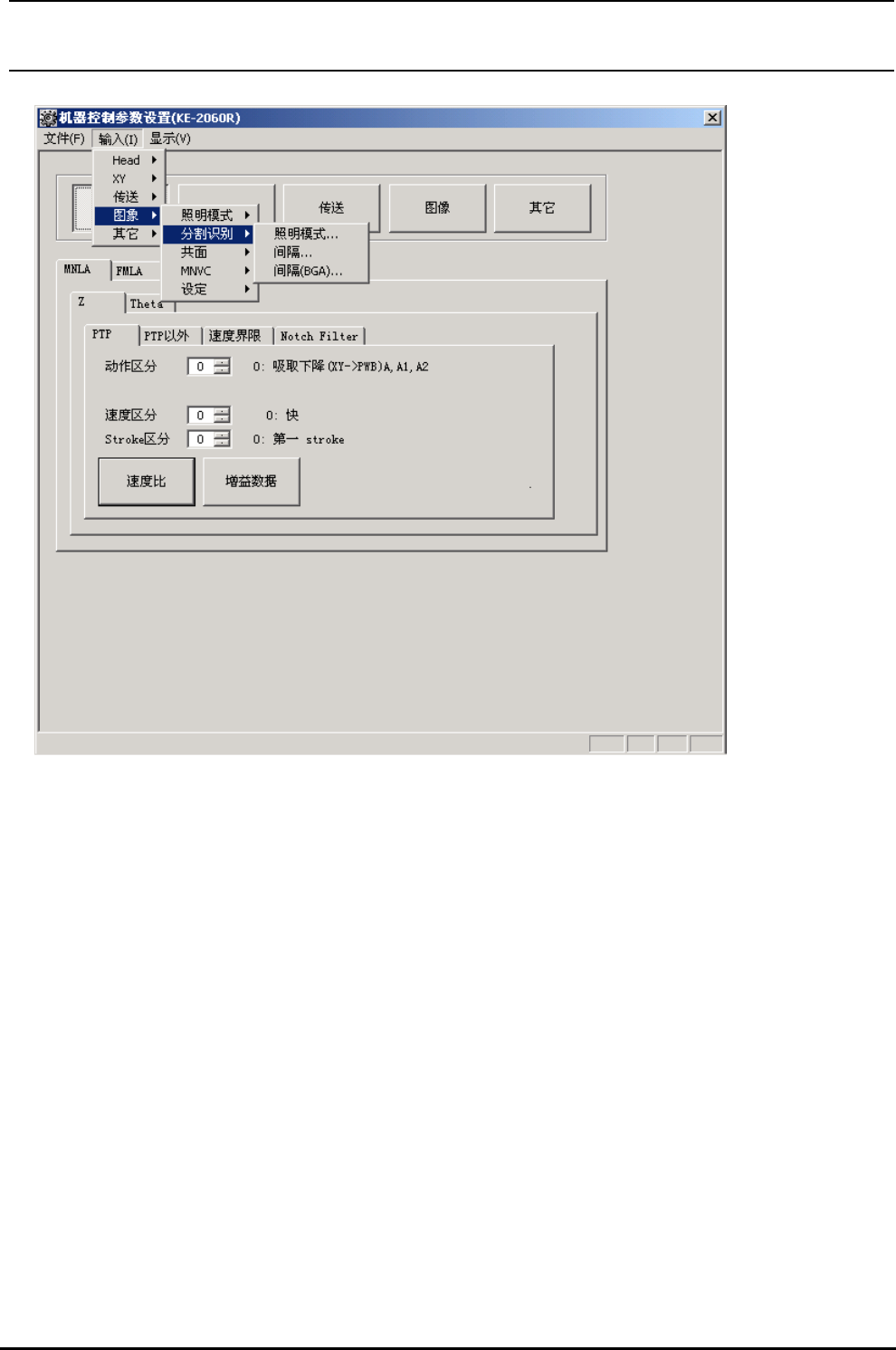 注) KE-2050 时,分割识别菜单为淡色显示,因此不能选择。