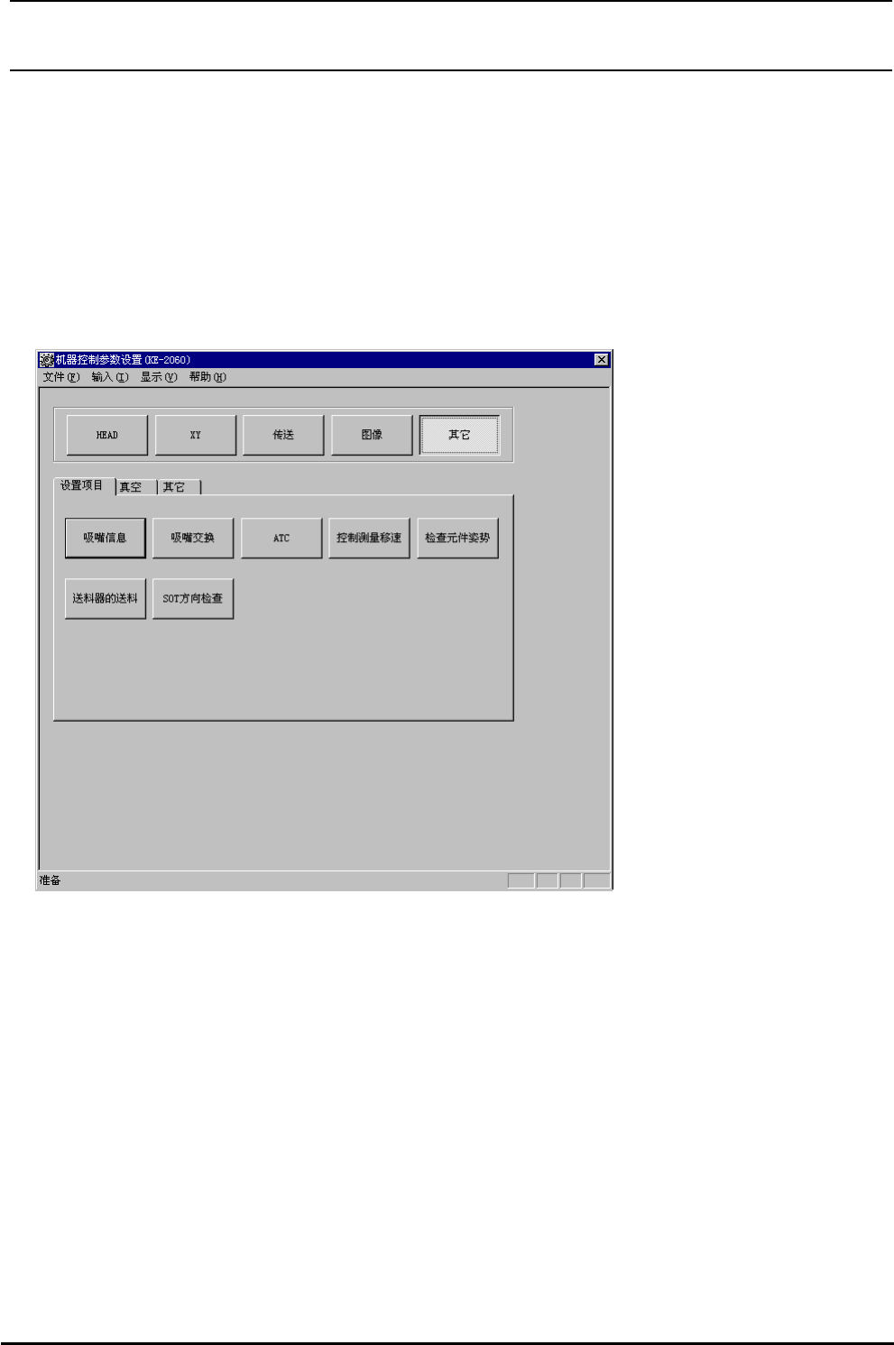 R e v 1 . 0 0 机械控制参数 3-5 5-1∼ 图 3-5-3 所示的表格。 3-5-1 设置项目的起动画面 选择了 [ 设置项目 ] 之后,就会显示出如图 3-5-1 所示的表格。 其它 选择了起动画面的 [ 其它 ] 按键之后,就会显示出如图 3- 图 3-5-1 设置项目的起动画面 选择了想编辑的项目按键之后,就会显示出有关设定画面。 3-19