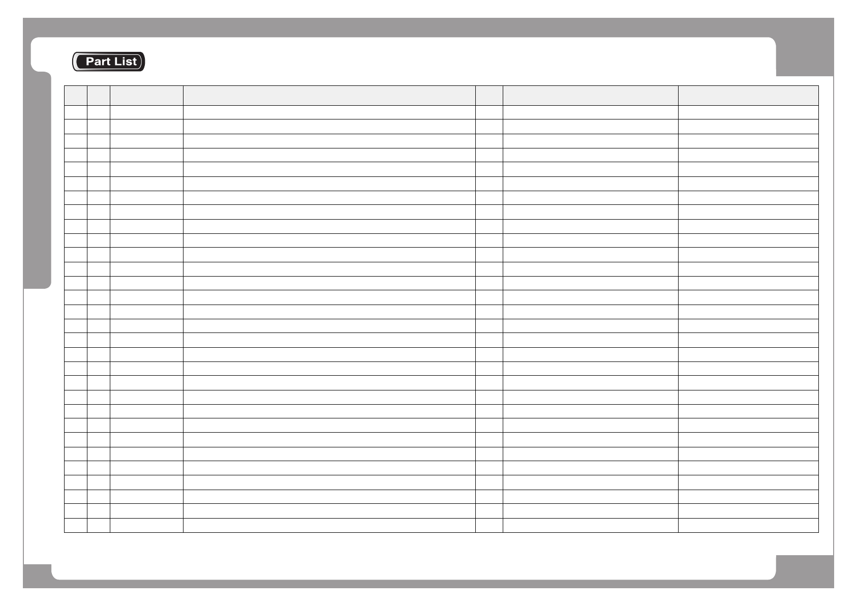 NO. Lev. PART NO. PART NAME Q'TY Old No. Reference
