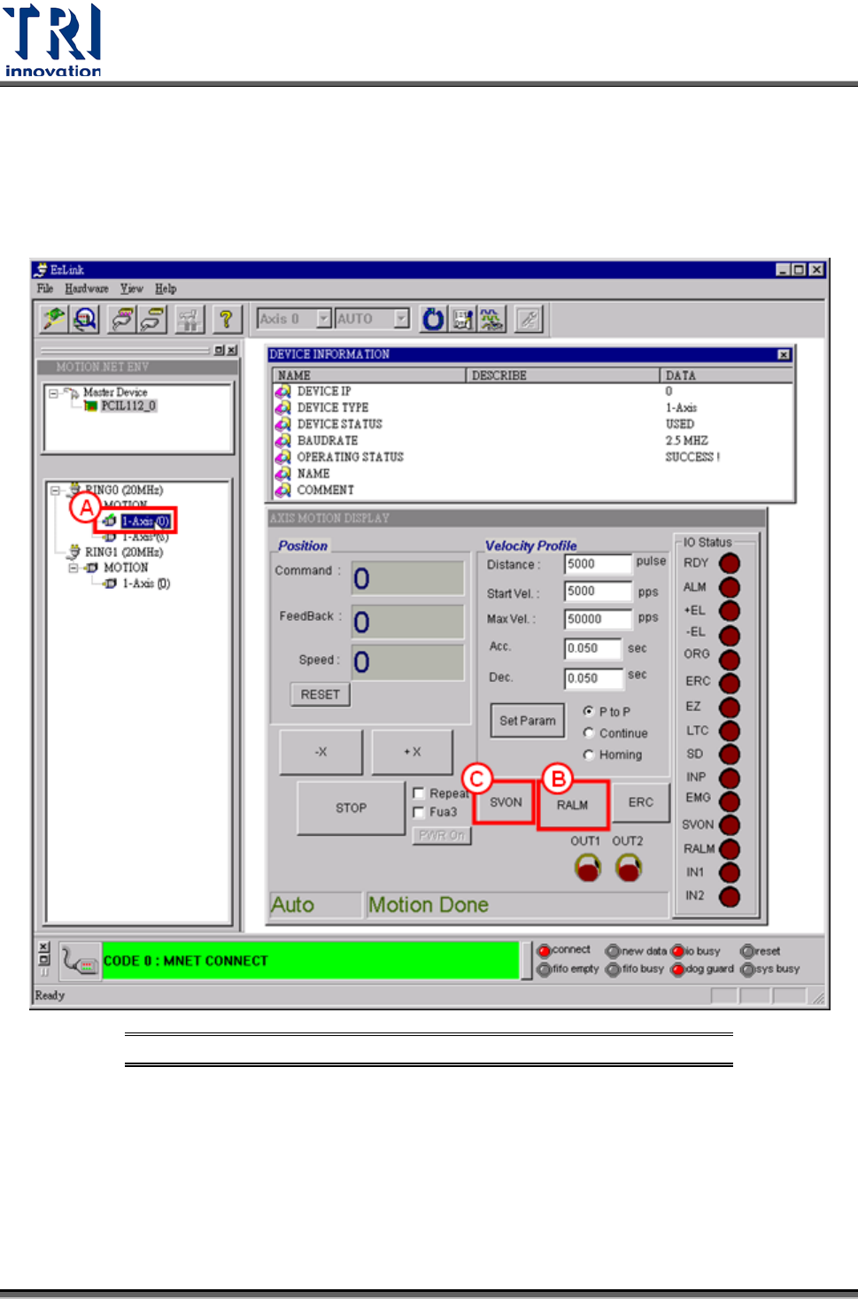 A. 按下[1-Axis (0)]按鈕,開啟 X軸動作控制畫面。