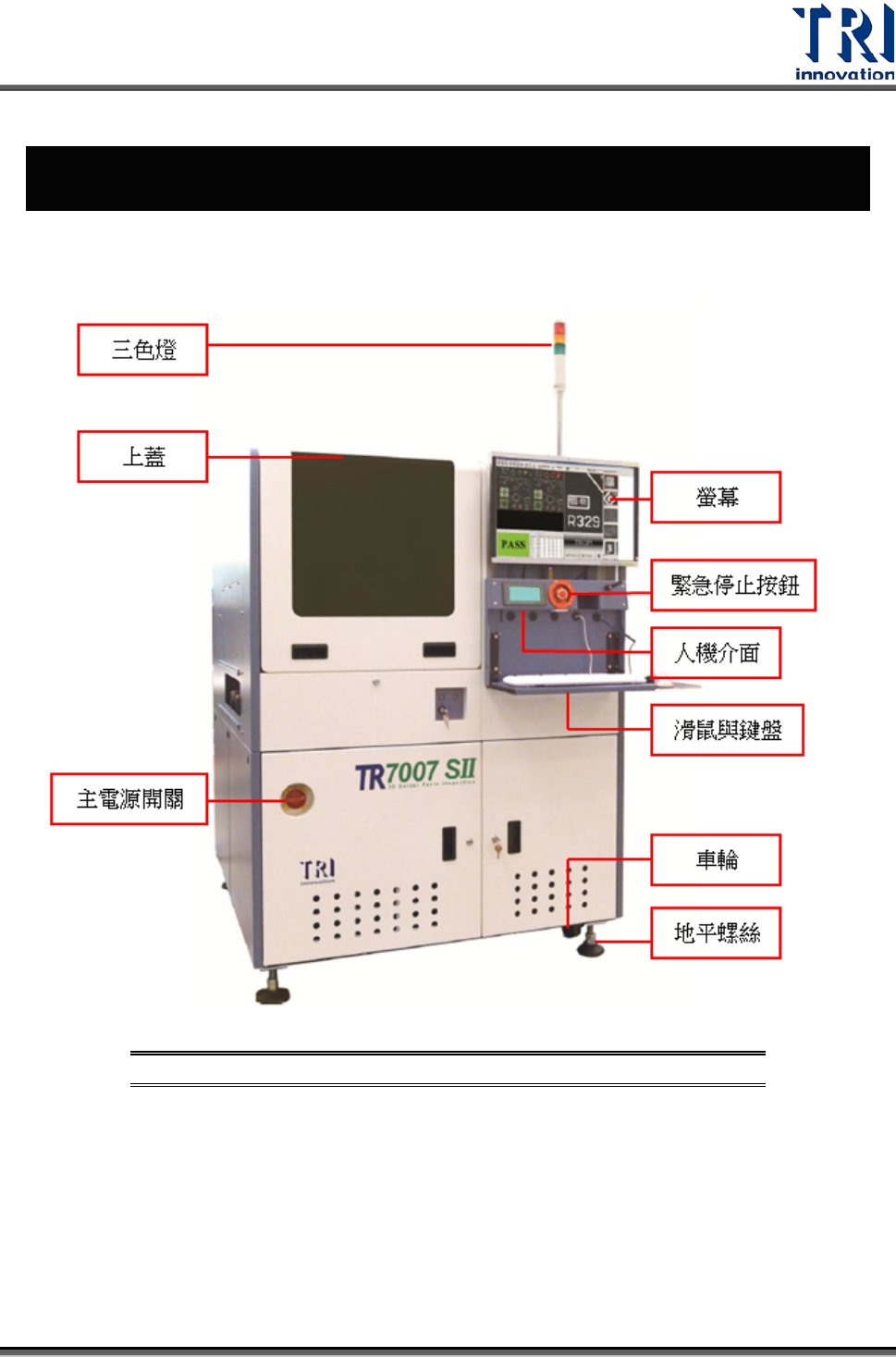 Test Research Inc. 2 TR 7007 SII User Guide – Har dware TR 70 07 SII 操作及儲存環境如下 Operating Storage A mbient T emperatur e: 0- 40 °C ( 32 - 10 4 °F) - 40 - 66 ° C (- 40 - 15 1 °F) Max. T emp erature G radie nt: 10 ° C/hou…