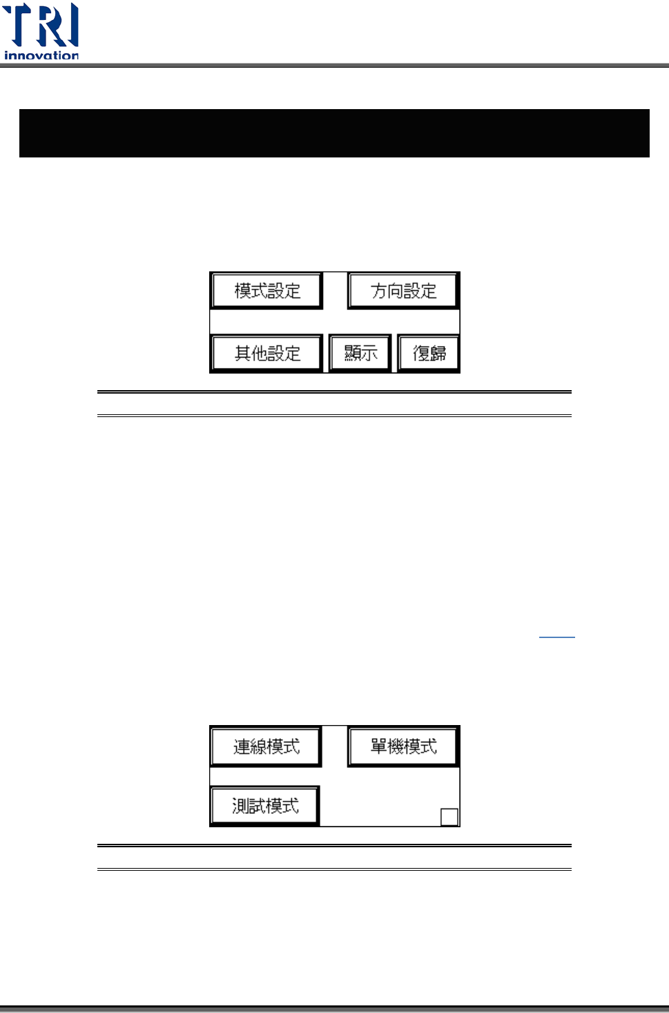 人機介面功能在於設定所需之測試條件,如單機模式、連線模式或測試模式,有無前