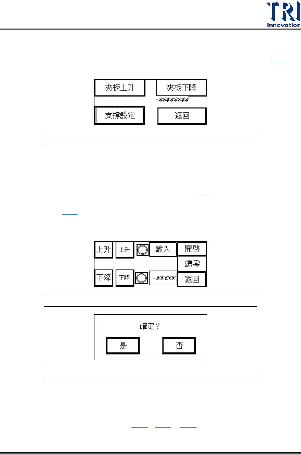 按[夾板上升]或[夾板下降]可分別測試夾板是否動作正常;按[返回]畫面會跳回