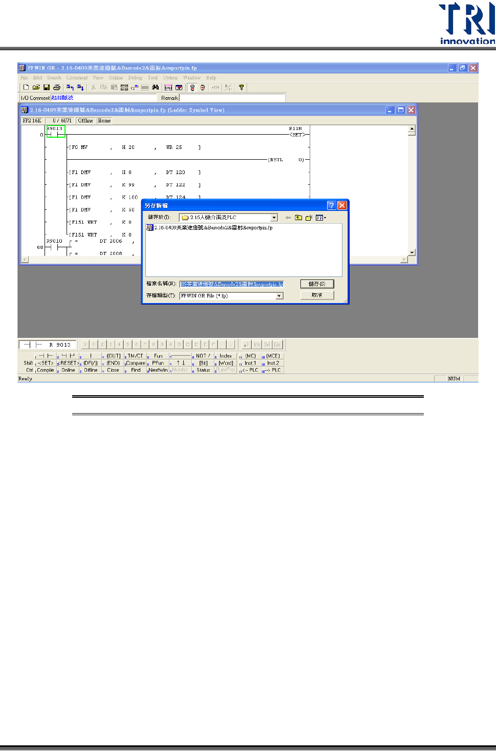 Test Research Inc. 30 TR 7007 SII User Guide – Hardwa re 6) 等候 PC 傳輸資料至人機介面後 ( 需一段時間,請耐心等候 ) ,程式即可更新完 成。 3.5 PLC 程式更換 1) 先將 PLC - PC 傳輸線連接好, PS2 端連接人機介面後方, RS232 連接 Ma in PC COM1 。 2) 開啟程式集中的 F PW IN G R 。 3) 進入 F PW I N…