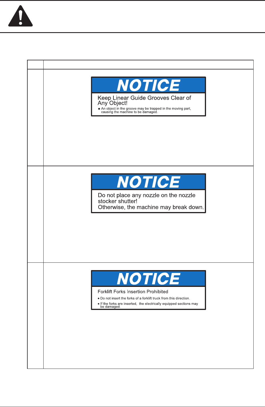 Safety Precautions Safe-32 AKHE-ID No. Alert Labels and Description (29) Description l Do not put any feeder sideways nor tools on the feeder bases. Otherwise, the machine will break down. (31) Be sure to fully insert th…