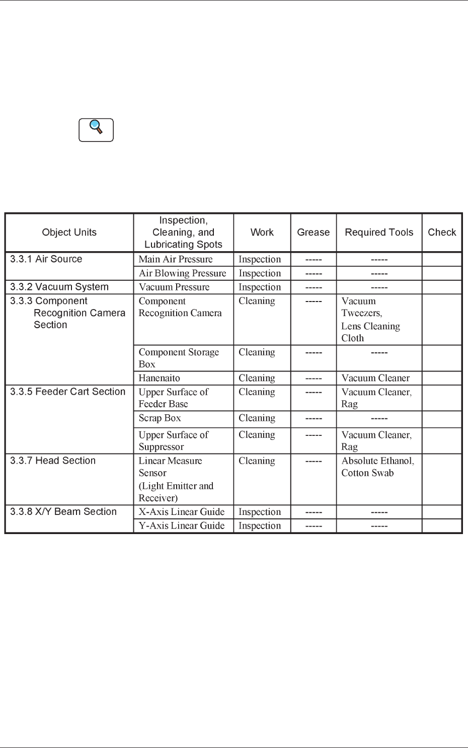 Refer to "3. Maintenance Spots" for the spots to be maintained.
