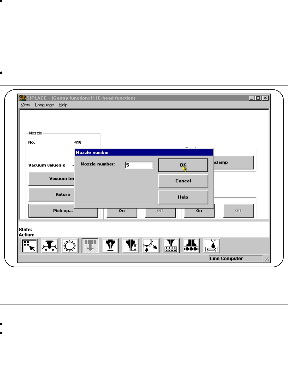 Type the number of the nozzle which is to be picked up into the input field of the input window.