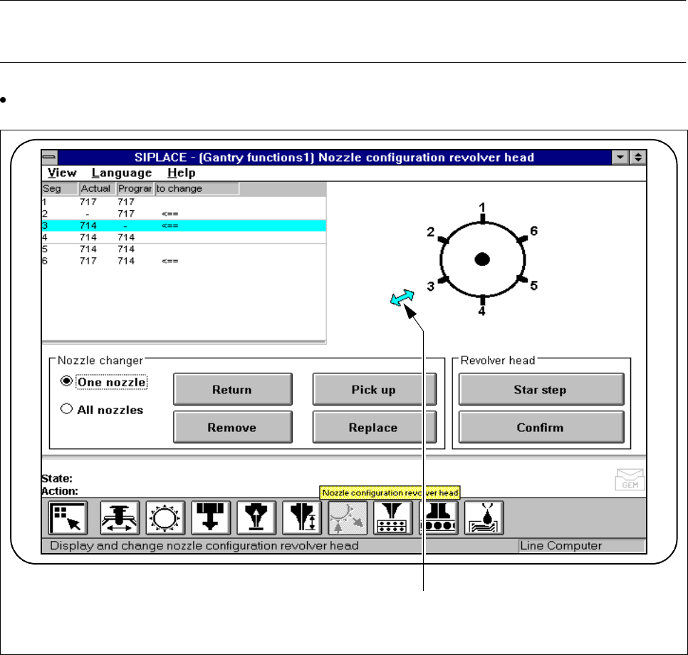 SIPLACE 80S-20/F4/F5 User M anual 4 Single Functions 05/99 Issue from Software Version SR.405.xx 4.3 Single Functions, Gantry with 6x Revolver Head (f or 80F5) 4 - 37 4.3.6. 1 6x Revolver Head - S t ar Step When th is fu…
