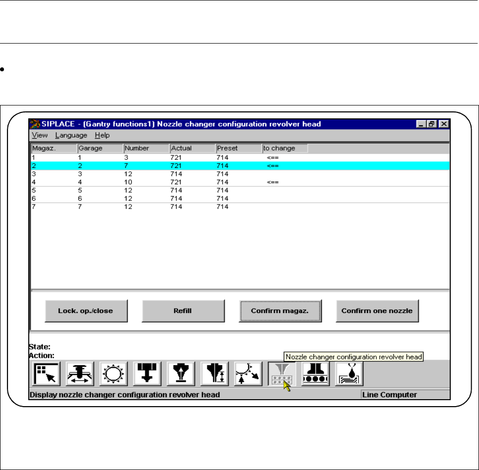 - The nozzle changer magazine concerned is shown in the Magazine column.