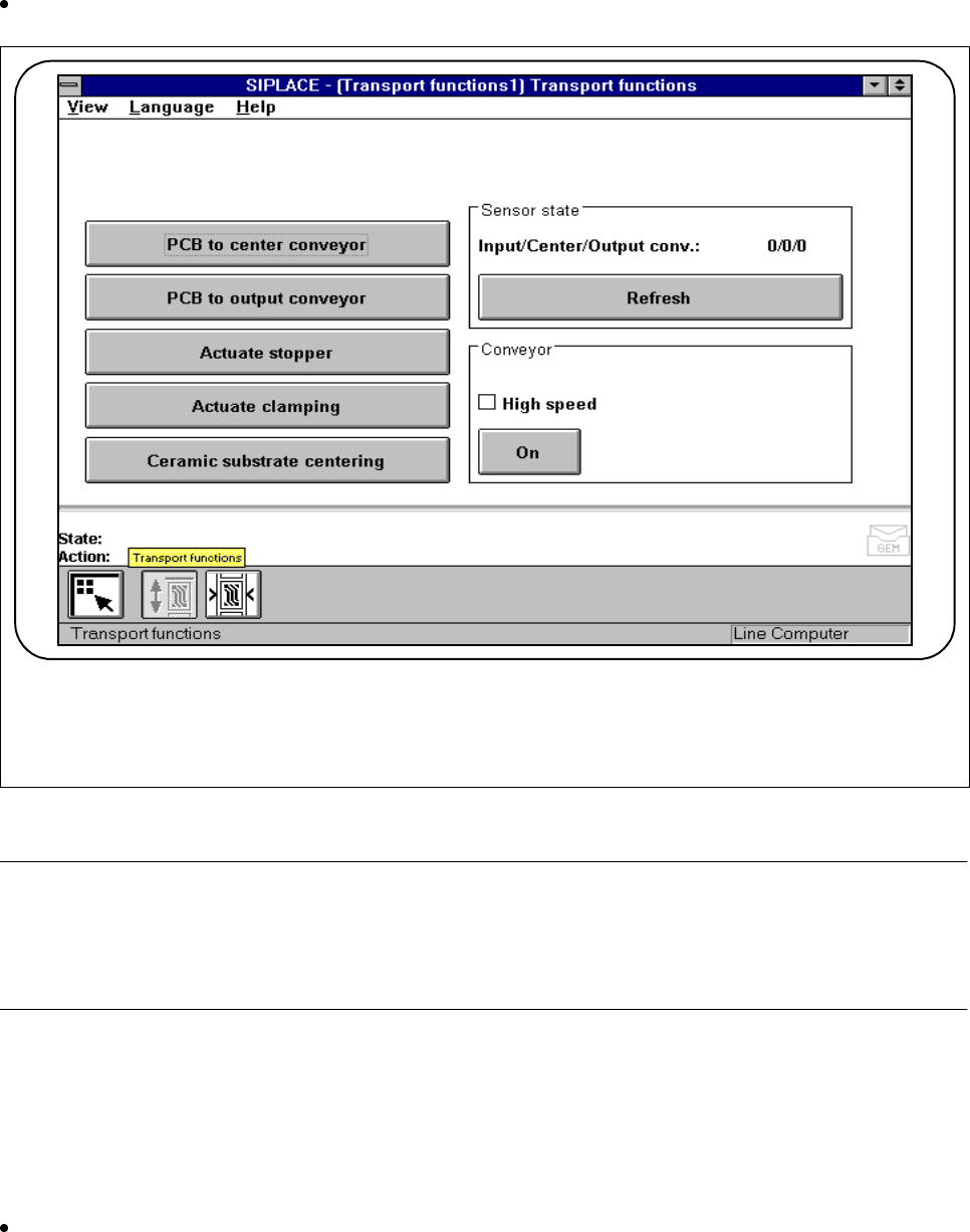 SIPLACE 80S-20/F4/F5 User M anual 4 Single Functions 05/99 Issue from Software Version SR.405.xx 4.4 Single Functions: Transport 1 4 - 47 4.4.1.2 PCB to Out put Conveyor When th is functi on is s elected a board on the c…