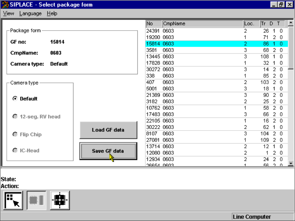 SIPLACE 80S-20/F4/F5 User M anual 5 Vision Func tions 05/99 Issue from Software Vers ion SR.405.xx 5.6 Test Comp onent Line en gineer 5 - 85 5.6.3. 3 Save GF data Opt ion With thi s option you c an save pack age forms to…