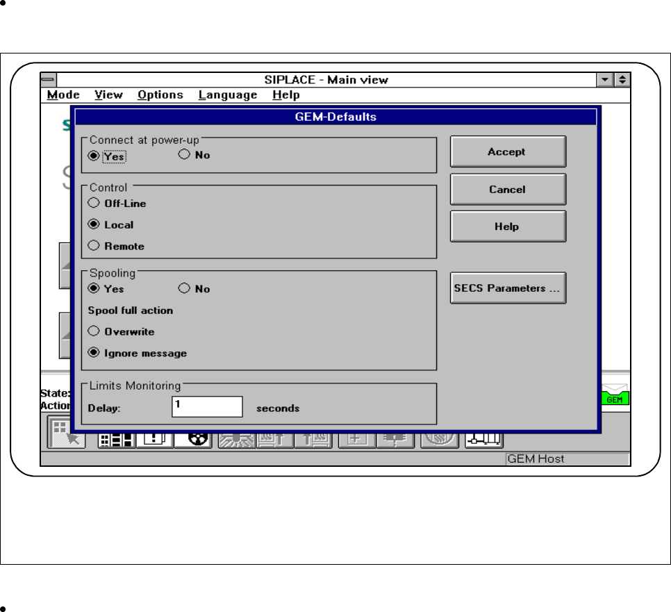 SIPLACE 80S-20/F4/F5 User M anual 11 Station Extensions/Options 05/99 Issue from Software Version SR.405.xx 11.9 GEM Interface 11 - 63 l C ontrol (see also Section 1 1.9.2.6 "Status Display") - Off-line It is n…