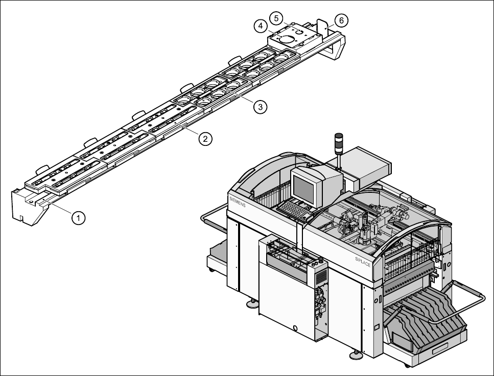 common support located in the space between the PCB transport and the feeder modules (see Fig. 11.12.1).