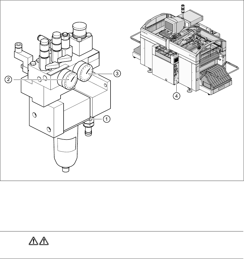 3 Pressure gauge for the stopper working pressure4 Position of the compressed air unit on the