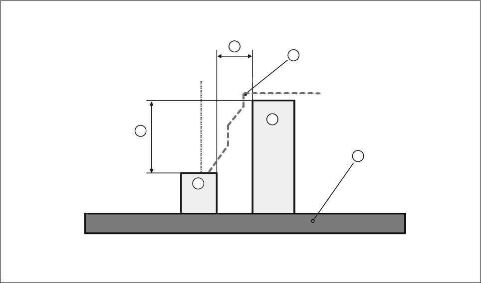 1 Components height difference in [mm] 2 Placement shadow in [mm]