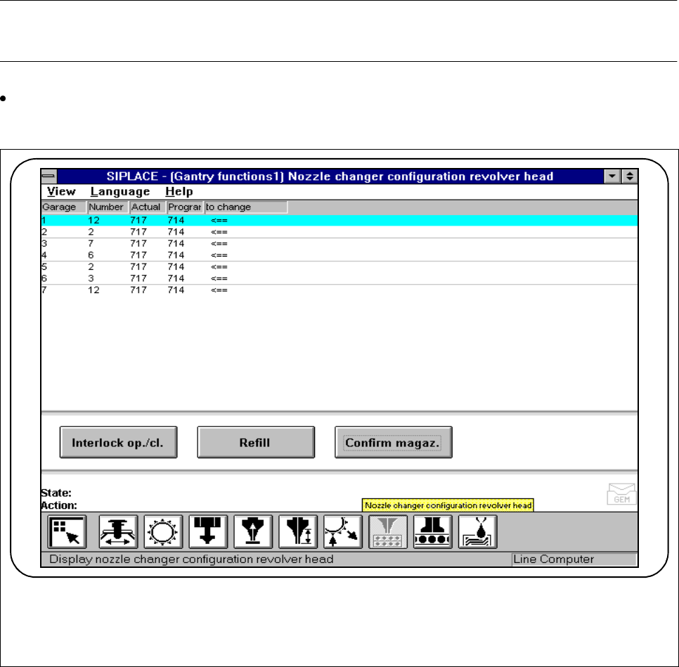 - The nozzle changer magazine concerned is shown in the Garage column.