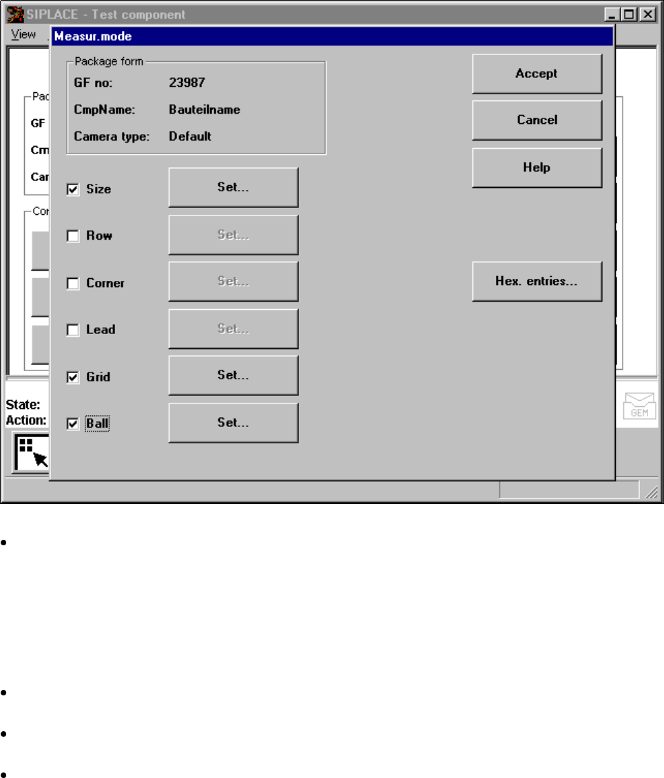 5 Vision Functions SIP LACE 80S-20/F4/F5 Us er Manual 5.6 Test Component 05/99 Issue from Software V ersion SR.405.xx 5 - 114 Line en gineer 5.6.4 .13 Measure Mode Option NOTE This opti on can on ly be ac tivated wh en a…