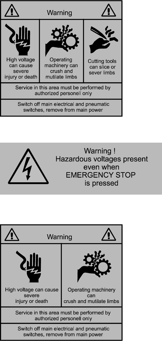 Fig. 1.1.3 Warning signs on the basic machine - part 3