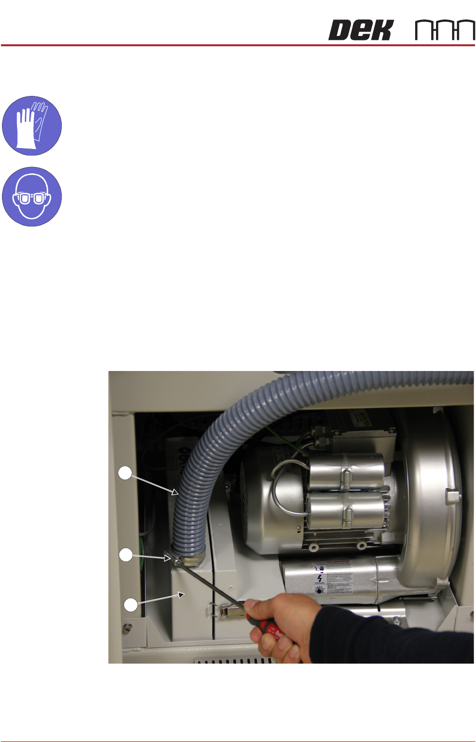 3. Remove the air duct (1) from the carbon filter unit (3) using a screwdriver or