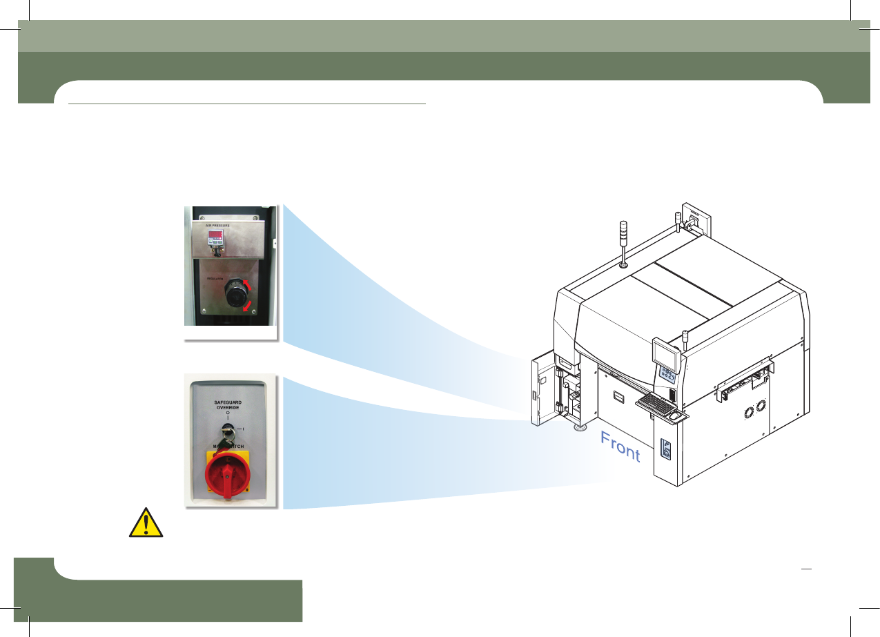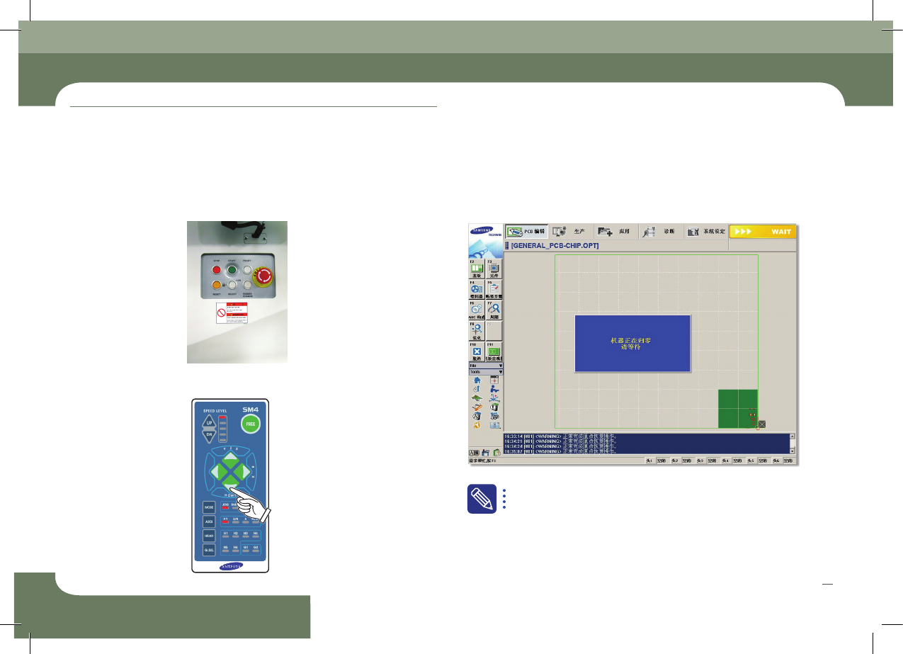 Operation Handbook 20 Chap ter 2 Fast & Flexible Chip Shooter 本部 分主 要介 绍电源 供应 方法 及生产 开始 前的 检验 事项 。 电 源 供 给 及 生 产 前 准 备 程 序 给设 备供 给电 源, P C 的 电源 就被打 开, MM I 将 自动 执行, 对程 序进 行初 始化 , 检验 各模 块。 2 . MMI 初 始 化 1 . Main 开 关 O…