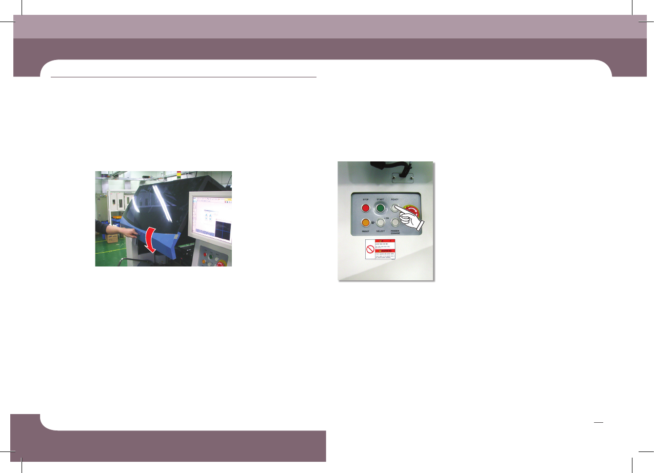 Chapte r 3 生产 Operation Handbook 35 Chap ter 3 Fast & Flexible Chip Shooter 生 产 本章 节主 要介 绍生产 作业 顺序 3 . B ackup P in 的 配 置 5 . 关 闭 前/ 后 安 全 门 6 . 按 ‘ REA D Y ’ 按钮