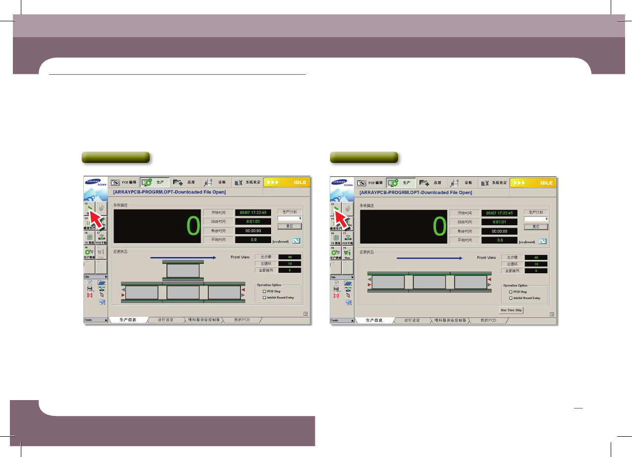 Operation Handbook 38 Chap ter 3 Fast & Flexible Chip Shooter 生 产 本章 节主 要介 绍生产 作业 顺序 - 按 < S T AR T >按 钮恢 复生 产。 必须 确认 设备 周围是 否有 工作 人员后 开始 生产 警 告 2 . 开 始 作 业 ( 自 动生 产 ) 1 . 按 操 作 面板 的 上的 ‘ ST ART ’ 按钮