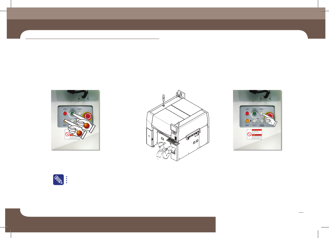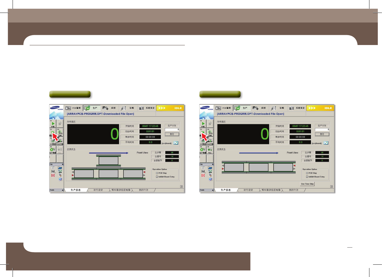 Operation Handboo k 48 Chap ter 4 Fast & Flexible Chip Shooter 紧 急 停 止 方 法 本部 分主 要介 绍检验 生产 中错 误或其 他事 项并 采取 措施 时的设 备暂 停方 法( 继续 /开始 模式) , 异常 停 止方 法( 人为 /系统 异常 停止 ), 异常 停止 后系 统重 启方法 等 按< ST AR T >按 钮恢 复生 产。 1 . 继续…