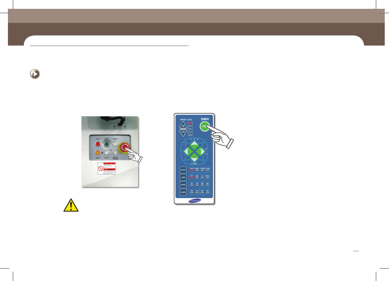 1. 打开‘EMG’开关(顺时针方向) 2. 按‘STOP’按钮