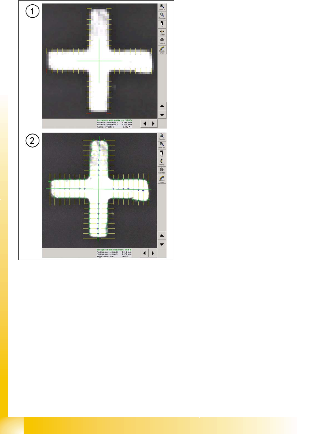 The Minimum recognition quality of 70% is set so that no fiducial shape faults will lead to incorrect