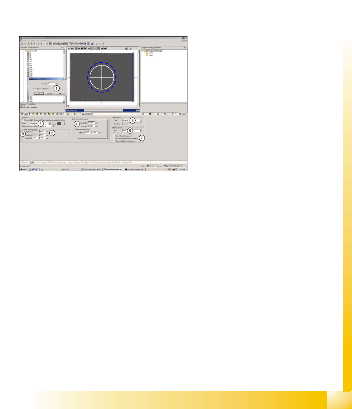 The SIPLACE Pro component shape editor allows you to program component shapes for optical