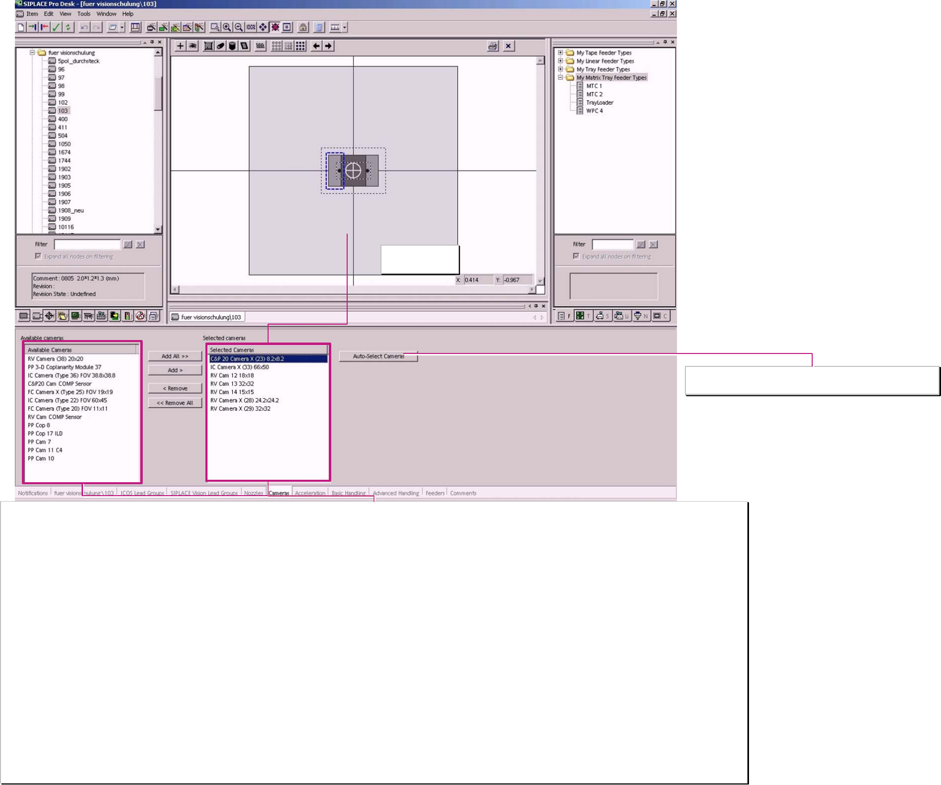 C&P 20 Camera X (23) 8,2x8,2 This is the only camera for C&P 20 and allows placement for 0402mm (01005) up to 6x6mm (2220 / SO6 / SO8) with tiny comp. - and pickup tolerances.
