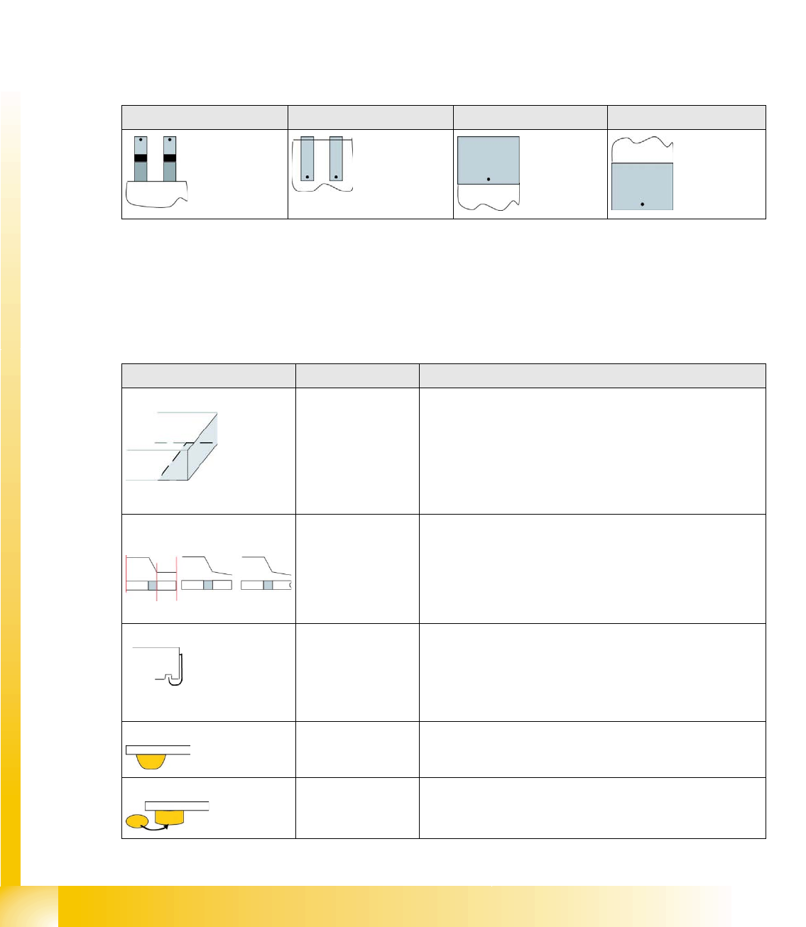 The diagrams below each show the edge of a component body, with leads. The orientation of the lead