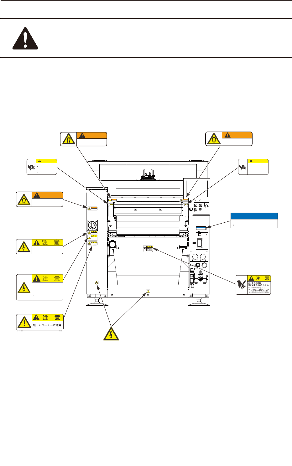 警告ラベルは、危険か所または注意か所に貼付けてあります。