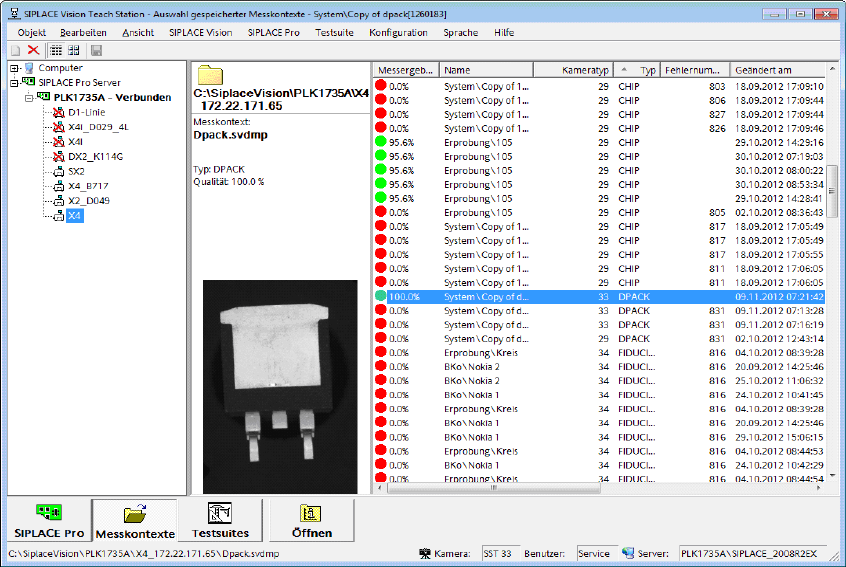 Ab SIPLACE Vision Teach Station Version 5.0.2 wird versucht, auf die Messkontexte der Bestück-