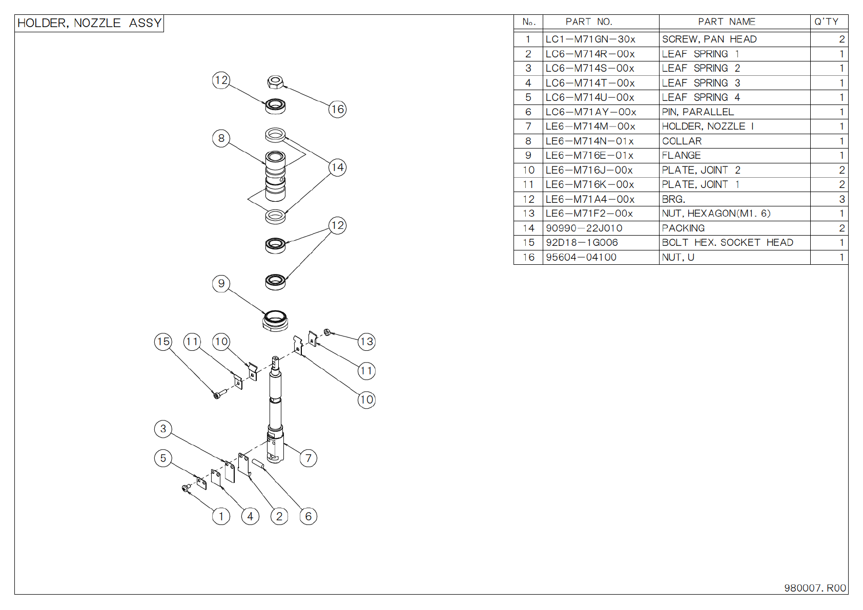 P A R T N O . P A R T N A M E . Q ’ T Y O N H O L D E R , N O Z Z L E A S S Y 1 L C 1 - M 7 1 G N - 3 0 x S C R E W , P A N H E A D 2 2 L C 6 - M 7 1 4 R - 0 0 x L E A F S P R I N G 1 1 3 L C 6 - M 7 1 4 S - 0 0 x L E A …