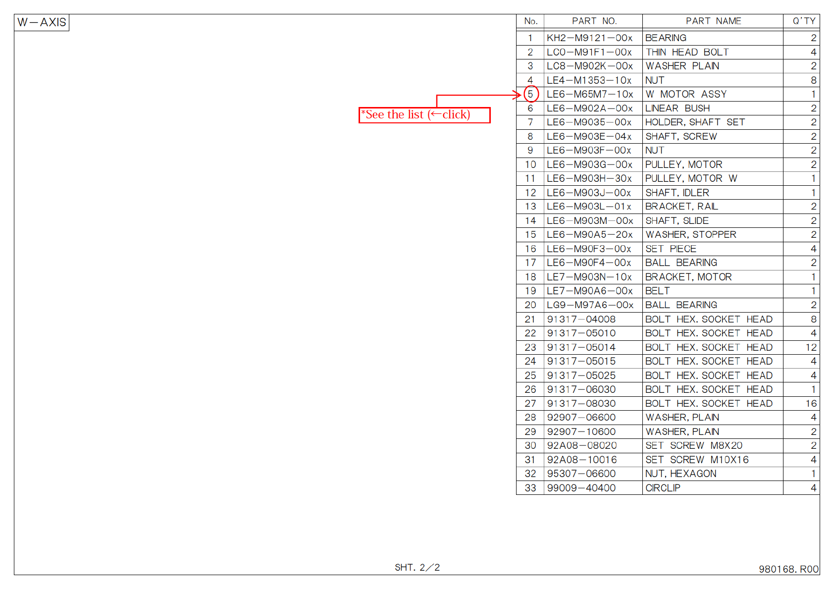 7 L E 6 - M 9 0 3 5 - 0 0 x H O L D E R , S H A F T S E T 2