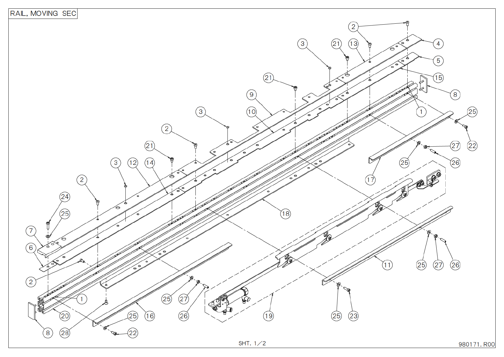 S H T . 2 / 2 P A R T N O . P A R T N A M E Q ’ T Y N o . R A I L , M O V I N G S E C 9 8 0 1 7 1 . R 0 0 1 L E 4 - M 1 3 5 3 - 0 0 x N U T 5 1 2 L E 4 - M 5 B 7 X - 0 0 x L O W H E A D C A P S C R E W 2 5 3 L E 6 - M 1 …