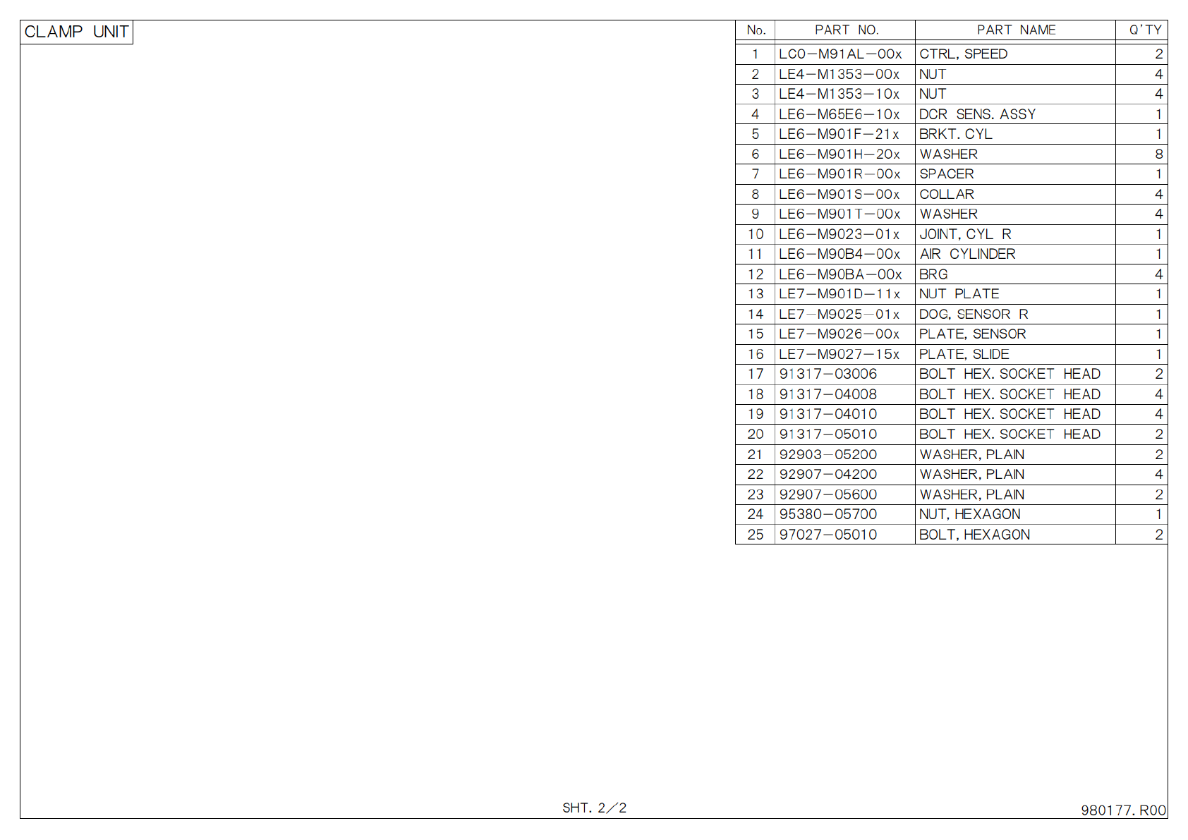 S H T . 2 / 2 P A R T N O . P A R T N A M E Q ’ T Y N o . 1 L C 0 - M 9 1 A L - 0 0 x C T R L , S P E E D 2 2 L E 4 - M 1 3 5 3 - 0 0 x N U T 4 3 L E 4 - M 1 3 5 3 - 1 0 x N U T 4 4 L E 6 - M 6 5 E 6 - 1 0 x D C R S E N …