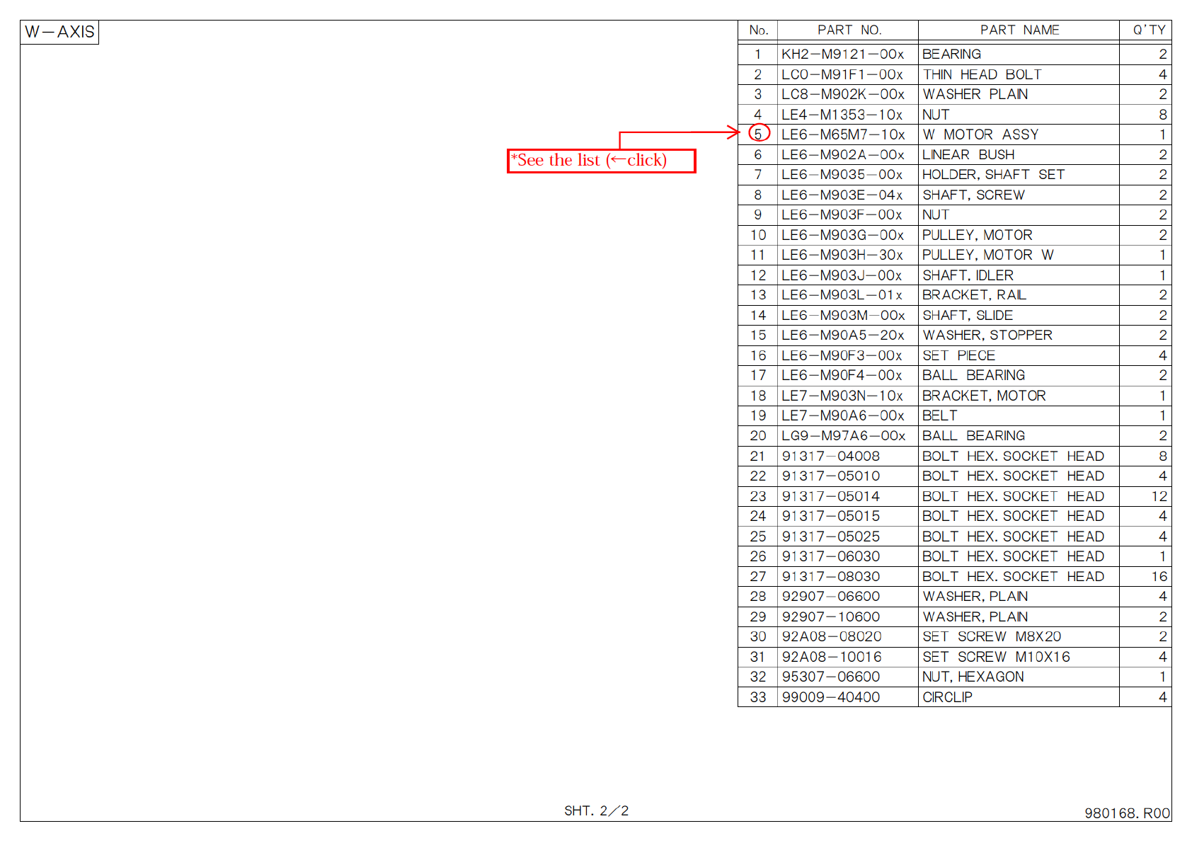 7 L E 6 - M 9 0 3 5 - 0 0 x H O L D E R , S H A F T S E T 2