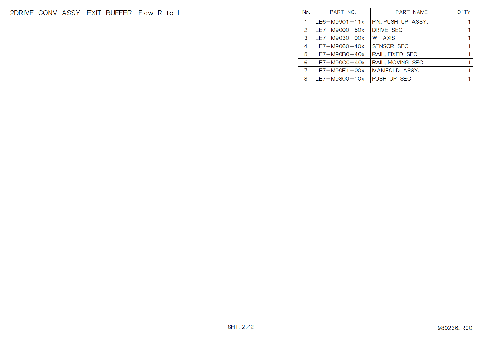 S H T . 2 / 2 P A R T N O . P A R T N A M E Q ’ T Y N o . 1 L E 6 - M 9 9 0 1 - 1 1 x P I N , P U S H U P A S S Y . 1 2 L E 7 - M 9 0 0 0 - 5 0 x D R I V E S E C 1 3 L E 7 - M 9 0 3 0 - 0 0 x W - A X I S 1 4 L E 7 - M 9 …