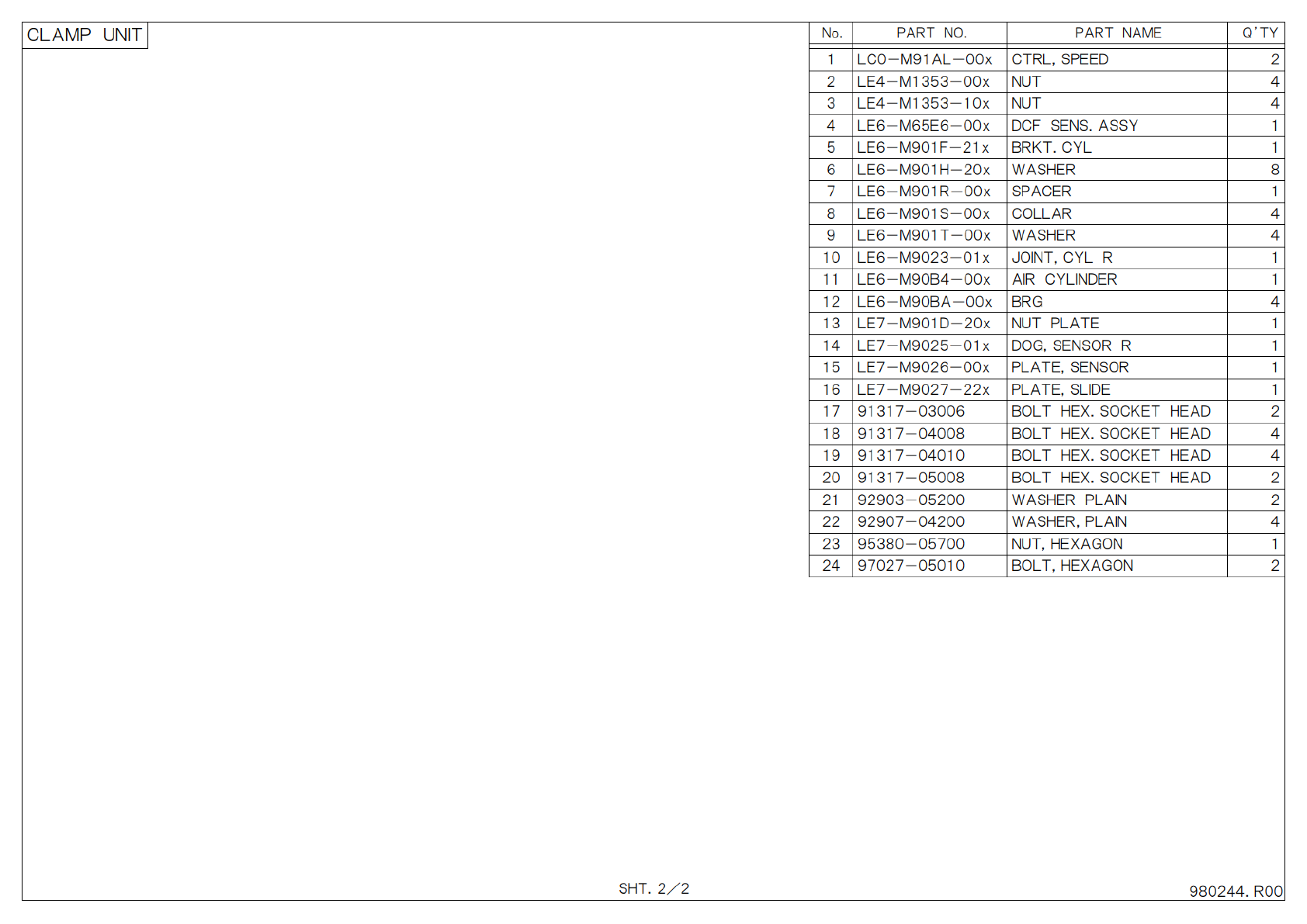 S H T . 2 / 2 P A R T N O . P A R T N A M E Q ’ T Y N o . 1 L C 0 - M 9 1 A L - 0 0 x C T R L , S P E E D 2 2 L E 4 - M 1 3 5 3 - 0 0 x N U T 4 3 L E 4 - M 1 3 5 3 - 1 0 x N U T 4 4 L E 6 - M 6 5 E 6 - 0 0 x D C F S E N …