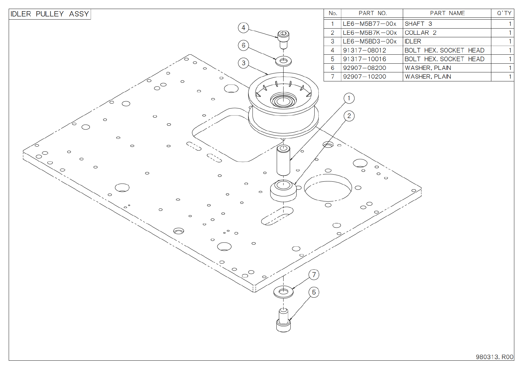 2 L E 6 - M 5 B 7 7 - A 0 x I D L E R P U L L E Y A S S Y 1