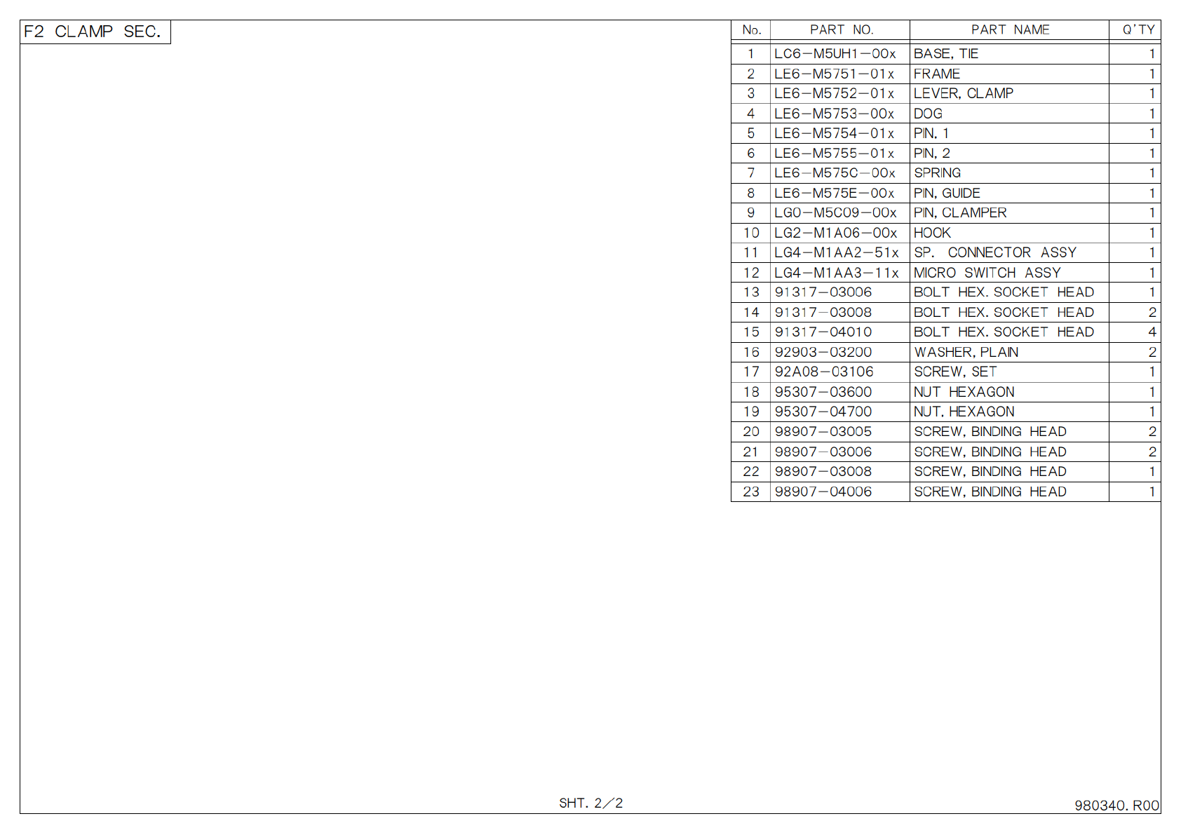 S H T . 2 / 2 P A R T N O . P A R T N A M E Q ’ T Y N o . F 2 C L A M P S E C . 9 8 0 3 4 0 . R 0 0 1 L C 6 - M 5 U H 1 - 0 0 x B A S E , T I E 1 2 L E 6 - M 5 7 5 1 - 0 1 x F R A M E 1 3 L E 6 - M 5 7 5 2 - 0 1 x L E V …