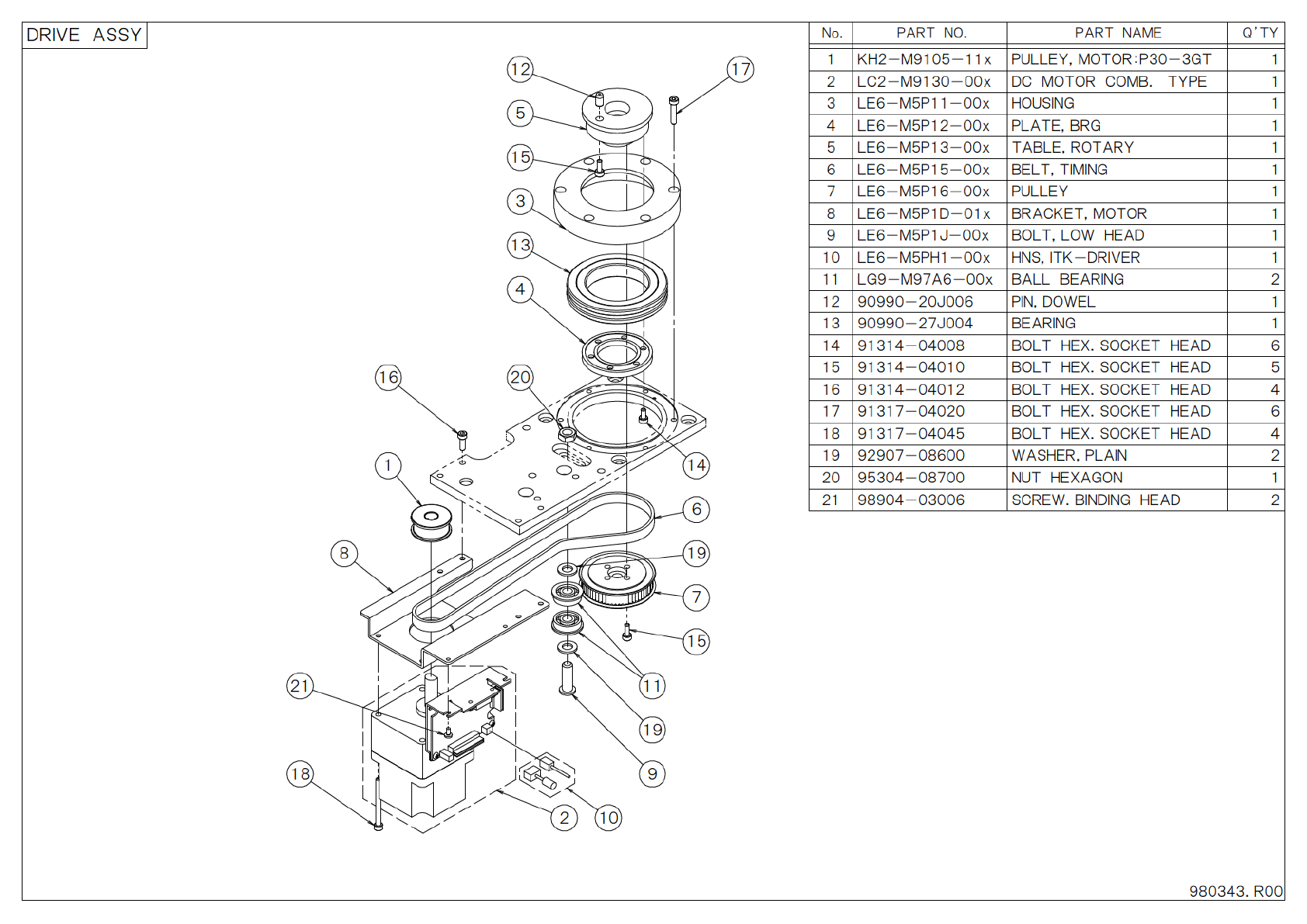 P A R T N O . P A R T N A M E Q ’ T Y N o . D R I V E A S S Y 9 8 0 3 4 3 . R 0 0 1 K H 2 - M 9 1 0 5 - 1 1 x P U L L E Y , M O T O R : P 3 0 - 3 G T 1 2 L C 2 - M 9 1 3 0 - 0 0 x D C M O T O R C O M B . T Y P E 1 3 L E …