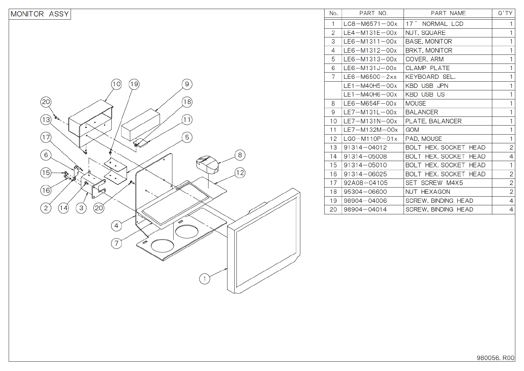 P A R T N O . P A R T N A M E Q ’ T Y N o . M O N I T O R A S S Y 9 8 0 0 5 6 . R 0 0 1 L C 8 - M 6 5 7 1 - 0 0 x 1 7 " N O R M A L L C D 1 2 L E 4 - M 1 3 1 E - 0 0 x N U T , S Q U A R E 1 3 L E 6 - M 1 3 1 1 - 0 0 x B …