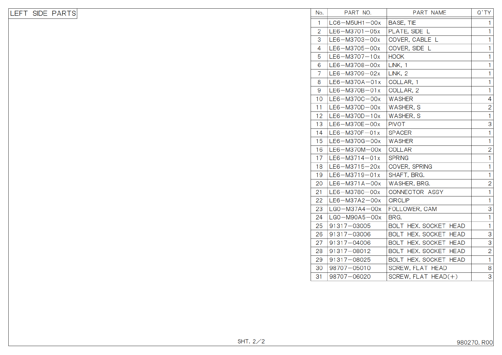 P A R T N O . P A R T N A M E Q ’ T Y N o . 9 8 0 2 7 2 . R 0 0 C O N N E C T O R A S S Y 1 L C 6 - M 5 U H 1 - 0 0 x B A S E , T I E 1 2 L E 6 - M 3 7 0 H - 0 3 x B R A C K E T , P I N 1 3 L E 6 - M 3 7 0 L - 0 1 x C O …