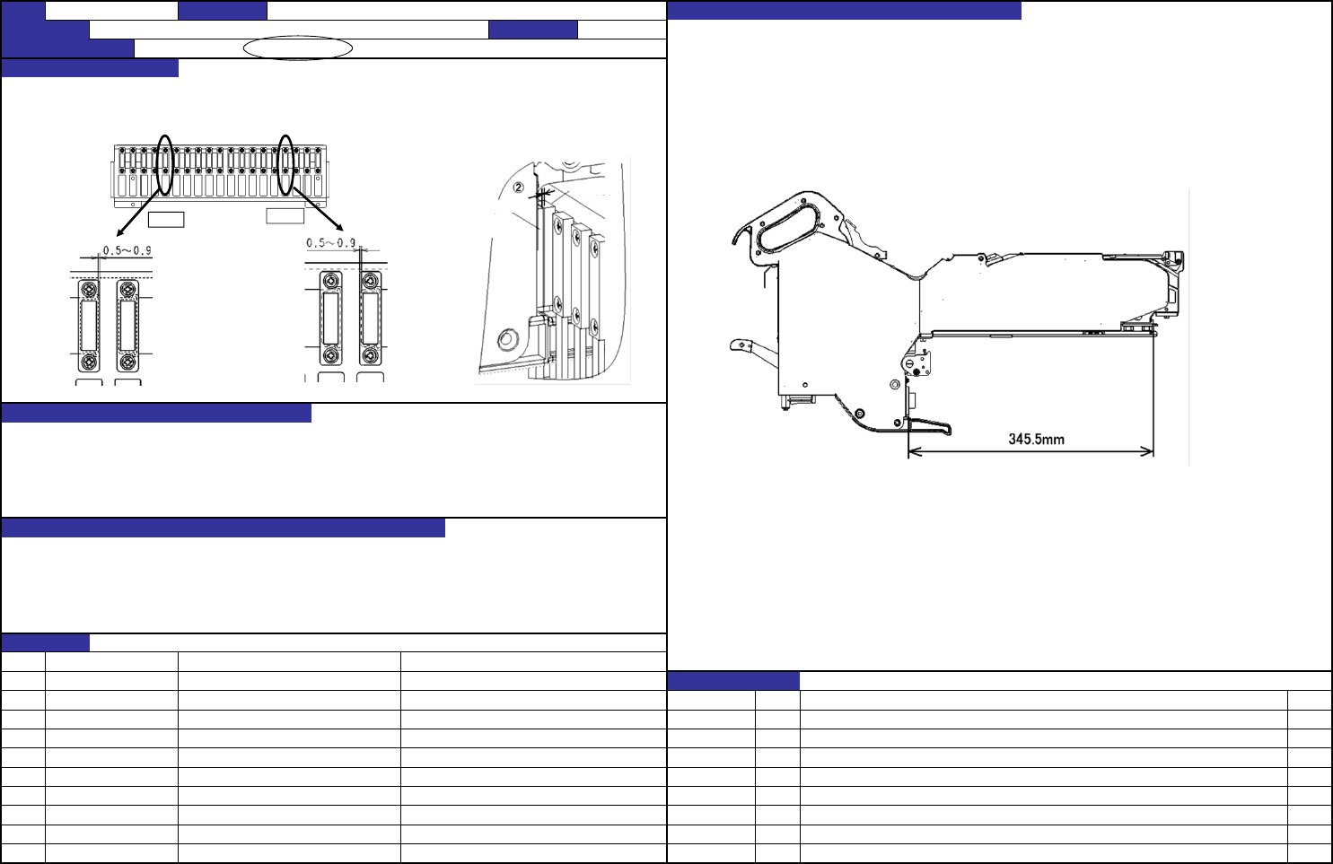 QA表 机种 ① 参照左图,在插入标准供料器(参照下图)的状态下,用厚薄规等确认 X 方向空隙。 超出规格调整值时,松开 FDC 托架固定螺丝调整位置。 FDC 托架、连接器的装配调整值 插入标准供料器测量空隙 ① X方向(下图 No.10 、 31 ) FDC 托架板金端面与阴连接器侧面的空隙: 0.5mm ~ 0.9mm ② 参照左图,在插入标准供料器(参照下图)的状态下,用厚薄规等确认 Y 方向空隙。 ② Y方向 FDC 托架组装…