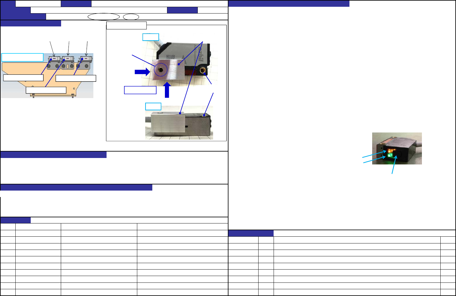 在各个受光传感器上安装治具, 3. 持续按住传感器主体的操作按钮(约2秒钟),直至传感器主体的橙色LED和绿色LED双方同时闪烁(约10Hz),再放手。