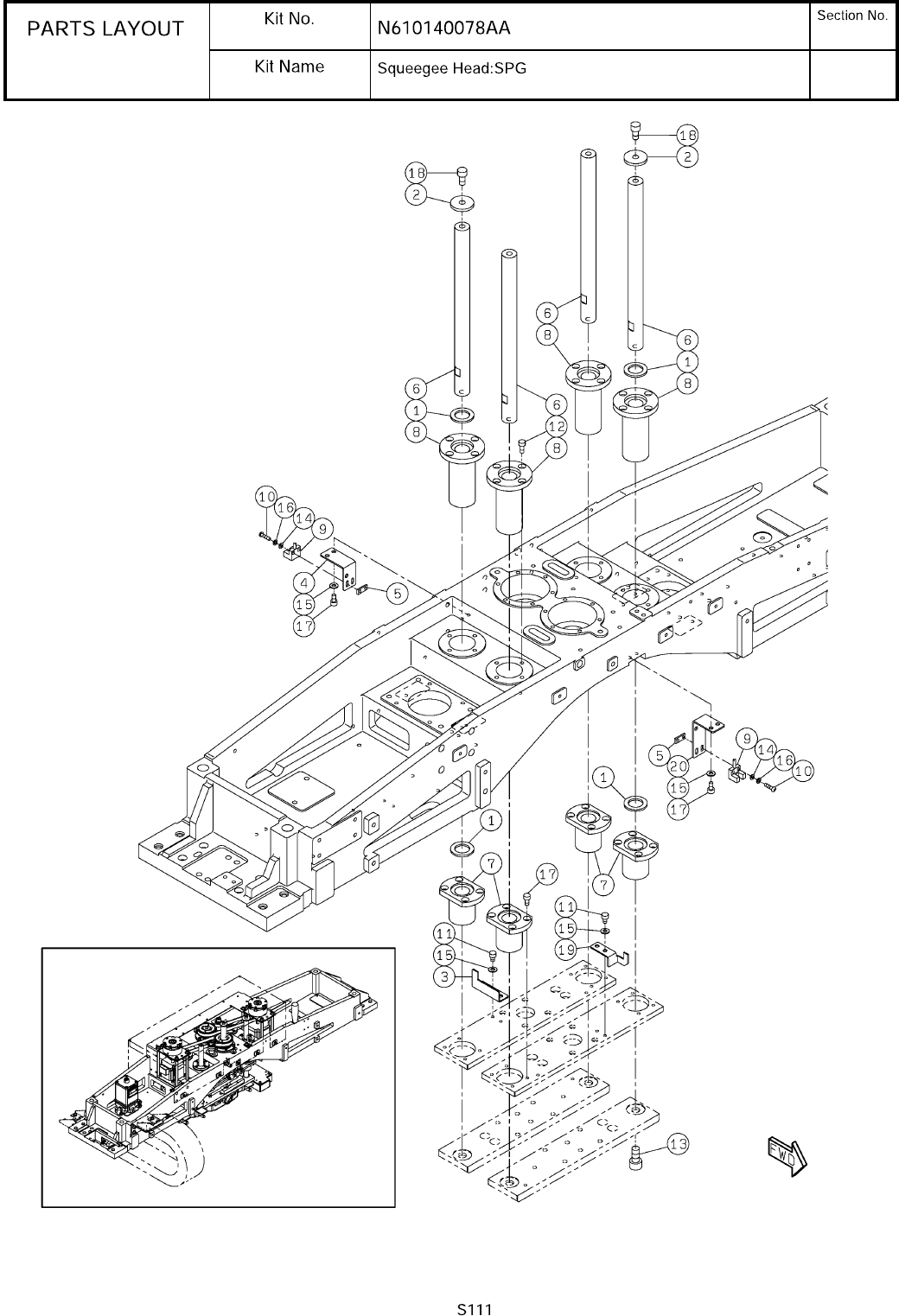 22-C スキージヘッド:SPG パーツレイアウト キット品番 キット名称 セクションNo. - - ( KN610 14007 8AA-17-3 )
